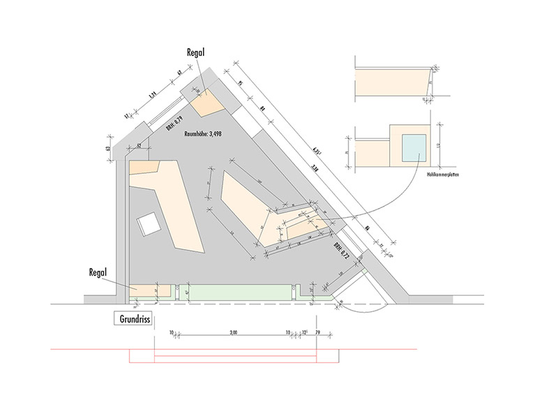 Die Anordnung folgt exakt der ungewöhnlichen Geometrie des Raumes und nutzt ihn maximal und funktional aus.