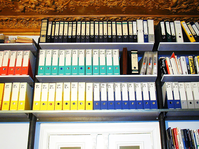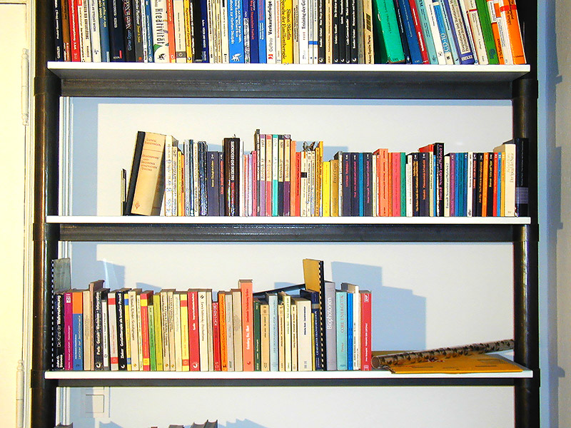 Fachböden perfekt an die Maße des Raums angepaßt, und stufenlos in der Höhe verstelltbar